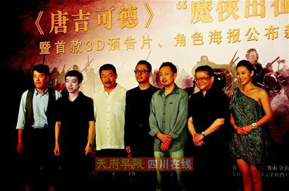 中国首部全3D电影《唐吉可德》昨日在上海首次披露了第一款预告片,导演阿甘带领郭涛、刘桦、王刚、苗圃、李菁与全国媒体见面。刚宣布“退社”的前德云社成员李菁的出现激起了现场记者的热情,也成为全场最抢戏的明星。