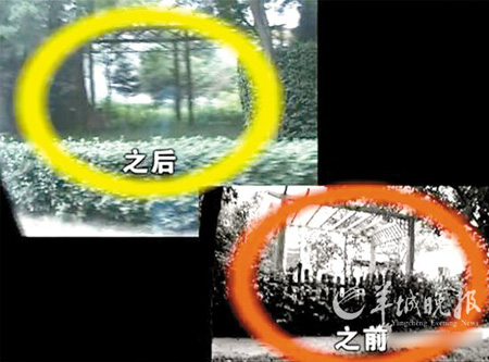 昨天上午11时,记者再次来到郭宅后院,记者发现3个小时之前仍然存在的侵占公共绿地的绿色木栅栏已经被拆除大部分,周边只剩下部分被拔下来的栅栏残骸。但是院内假山、水池,以及绿色凉亭仍然存在。据了解,之前城管部门曾经确认此部分也属违建。