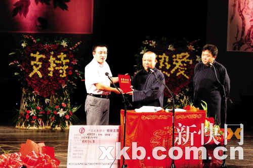 "悠然自德、谦手十年"郭德纲与于谦合作十周年庆祝系列演出8月14日在北京北展剧场举行。该场演出是郭德纲与于谦合作十周年系列演出中的一场,在"打记者门"事件发生前就已经确定。在演出最后,郭德纲、德云社及此次活动主办方向此次受灾的甘肃舟曲捐款20万元,其中郭德纲私人捐款10万元。15日的专场演出暂停以纪念死难者。舞台中央粉丝送上"快乐、坚持、支持、热爱"的花篮以示鼓励。
