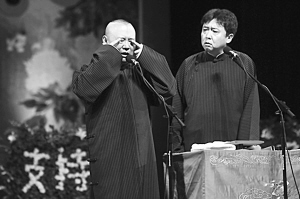 演出在当晚7:30左右开场,郭德纲和于谦都身穿传统长衫出场,笑容满面,开场白是:“感谢在座的衣食父母。”全场掌声响起。在当晚演出中,郭德纲和于谦一共说了四段经典作品,并且在观众一再要求下,返场了五次。郭德纲一向擅长拿真实事件“砸挂”。在返场中,郭德纲就用“保罗”和于谦父亲串联了起来,让现场笑声不止。除了郭德纲和于谦二人的表演,在近3小时的整场演出中,还有多名弟子上台演出,但并无知名度较高的弟子出现。演出结束后,一群“纲丝”仍旧不愿离场,留在门口想与郭德纲合影签名,并且打出横幅支持郭德纲。面对观众如此热情,郭德纲也是感慨道,“我能力有限,就会说个相声,只要大家喜欢,我们就愿意给大家带来快乐。”据了解,本场演出所有低票价已经在一周之前全部售出,而最高门票也是所剩无几。在离开场还有一个钟头的时候,黄牛党都聚集在售票处,但并不是出售门票,而是收门票。当记者向黄牛党打听票价时,得到的回答只有“没票,你有票卖吗?”(王少文)