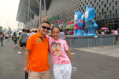 欧阳雯鑫和父亲欧阳奋强在世博会里的留影