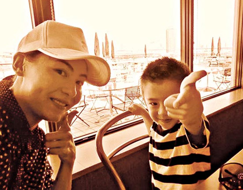 Lucas人小鬼大,和妈妈照相也摆pose抢镜。