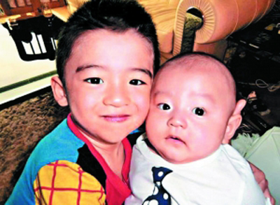 Lucas没有与弟弟争宠,平时好动的他在家非常小心地抱着弟弟Quintus面贴面。