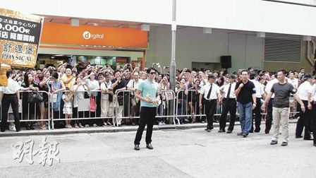 当活动开始,郭富城获准于封路后唯一乘坐保母车到新店外街下车,两旁行人路上满是市民,当见到郭富城出现时,纷纷欢呼和吹口哨,郭富城随后便走上预先准备的吊车升降台,升到4楼高的户外巨型广告海报外,其间升降台摇摆不定,但无碍他手执巨型画笔签名,他还摆出各种pose向市民挥手,展现亲民作风。当他返回地面后,再进行醒狮点睛仪式。