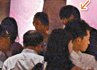 周董(箭头处)在夜店寻乐,美眉在旁靠得近