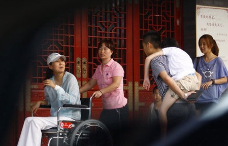 潘蔚腿受伤坐轮椅外出用餐 老公孙楠不见踪影(图)(5)