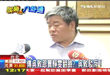 中新网8月20日电 据台湾TVBS报道,过去力挺贾静雯的制作人吴敦,传出在台湾替贾静雯接了广告,但是贾静雯不但不接,还去接别的工作,吴敦气骂贾静雯没诚信,耍了他,还说她玩两面手法,未来一定会穿帮。不过人在上海的吴敦,被问到这件事,赶紧灭火说是写错了,不想再提,更透露现在还跟干女儿贾静雯有联络,并不像外界形容那样。
