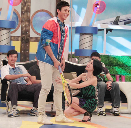 小S一向作风大胆,图为其跪扑台湾网球名将卢彦勋
