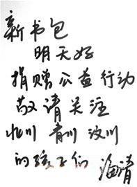 近日,海清赶到成都参加某品牌新品发布活动,并应邀为灾区同学书写开学寄语。一袭优雅的白裙、一双至少10寸的高跟鞋,“完美媳妇”海清就这样蹲在成都的酒店走廊里,在纯净的白纸上为 “三川”的孩子们写下这样一句话:“新书包·明天好”捐赠公益行动,敬请关注北川、青川、汶川的孩子们!