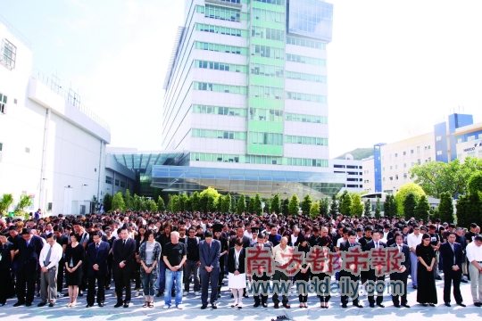 同日下午3时,无线也在电视广播城停车场举行默哀仪式,无线高层方逸华、李宝安与近千名职艺员包括汪明荃、刘松仁、曾华倩、黄宗泽、胡杏儿等,而原定于当天下午2点半举办的《摘星之旅》剧集宣传活动也因此取消。据无线外事部宣传人员透露,公司是在昨天早上9时许才发出电邮告知全体员工将会举办哀悼仪式,现场参与的职艺员全部自发性参与。