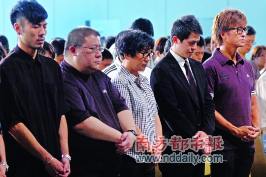 (左起)甄思羽、刘锡贤、鲍起静、盛品儒、林韦辰低头默哀。