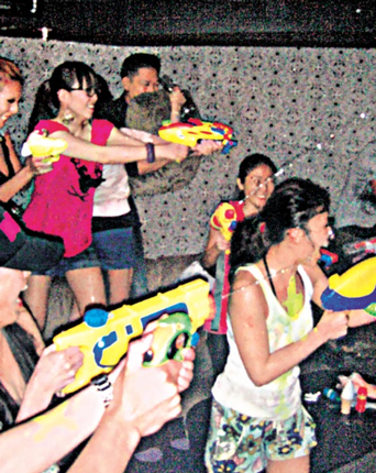 派对上靓女毫不介意玩湿身,与在场男士展开激烈水战。