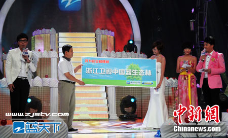 为了庆祝两周年生日,倡导“生态传播,打造绿色收视”的理念,浙江卫视启动了“携手你我 共绘蓝天”的大型公益植树活动,而中国蓝当红主持人沈涛为本次活动的形象代言人。活动以网络与现实互动的方式号召亿万网友与浙江卫视共建“中国蓝”生态林。本次活动得到了延安市委、市政府、共青团延安市委领导及皮皮网的大力支持,在活动进行过程中,新浪、天涯、搜狐等各大门户网站纷纷加盟支持,截止28日《星耀中国蓝两周年庆典》结束时,网络植树活动的参与网友已突破一亿人次,其中当晚新浪微博转发人次达12453位,天涯社区转发为21386位。共青团延安市委党组成员、延安市青年联合会副主席刘海专程从延安赶到晚会现场接受了“浙江卫视中国蓝生态林”首批树苗的捐赠。