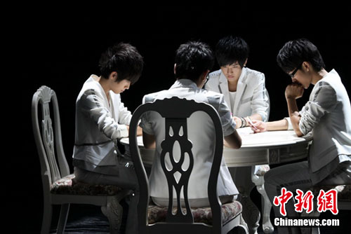 中新网9月2日电 刚刚结束完拉票演唱会,8月30日下午新鲜出炉的快男“四小天王”就拍摄了一组充满内心戏的VCR,“四小天王”变身赌神在牌桌上“勾心斗角”,各自揣测对方的牌,好使出必杀技的一幕。而快男们首次挑战高难度的内心戏都能迅速进入角色,谭杰希的背影被赞最帅,而刚刚开始频频笑场的武艺而展示出他“犀利”的一面。
