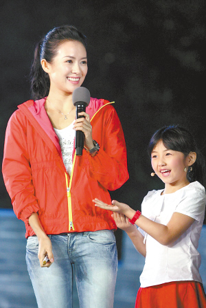 《开学第一课》由川籍主持人王小丫和李佳明主持,片中,章子怡头扎马尾,红色开衫配牛仔裤,她大步走上八达岭长城脚下的舞台。面对台下学生,章子怡微笑着讲述了自己的儿时梦想——想当一名老师。节目尾声时,章子怡再次被王小丫请上台,表演诗朗诵。