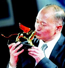 仪式正式开始后,电影宫首先播放了一段节奏明快的短片,将吴宇森从影数十年拍摄电影的精彩镜头剪辑在一起。徐克现场改编了他与吴宇森合作的经典作品《英雄本色》里的台词来向吴宇森致敬,“我要争一口气,不是想证明我了不起,我是想告诉人家,我只想得到我应该得到的东西。”随后吴宇森上台,接过闪闪发光的金狮奖杯,他眼含泪光,连连鞠躬致意。在致辞中他对所有支持他、帮助他的亲朋好友致以诚挚谢意:“小时候电影只是我的一个疯狂梦想,没想到如今却成为现实,我是个幸运的人……母亲的话常在我耳畔响起,如果坚信某事,就要坚持到底。” (小鱼)