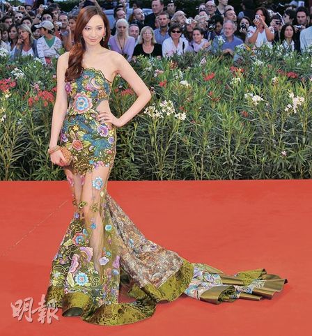 吴佩慈穿上性感透视拖地长裙亮相红地毯,吸引传媒注目