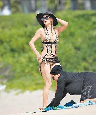 希尔顿夺最糟名人烂后 豹纹泳衣度假男友趴地服侍(2)