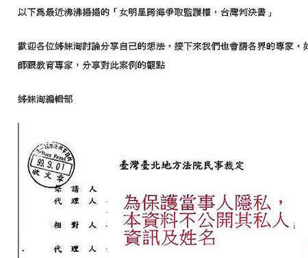 陶晶莹昨晚上传一篇“女明星跨海争取监护权”文章。