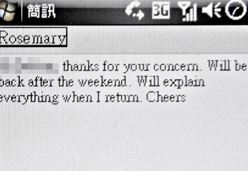 Rosemary昨日回复短讯,表示稍后回港会解释一切