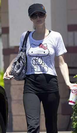 希尔顿穿Hello KittyT恤孤单现身 心情低落(图)(2)