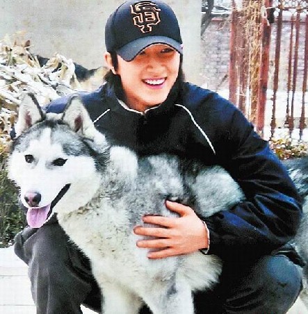 20岁时的韩庚抱着心爱的哈士奇,可惜它后来走丢了