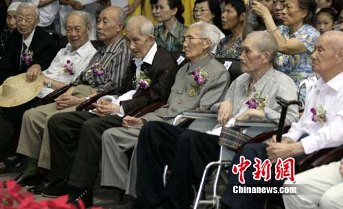 9月11日,央视名嘴崔永元携八名耋耄抗战老兵到重庆宣传《我的抗战》,八名老兵年龄最长者96岁,最小也有84岁,图为老兵们坐在台下。 作 者:连肖