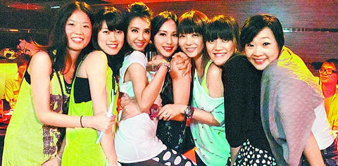 蔡依林(左三)与好友办荧光主题的庆生派对。