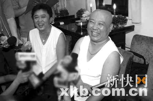 停业自查一个月的德云社前晚在北京天桥剧场正式复演,而压轴出演的郭德纲与于谦也没有辜负众多“钢丝”的翘首企盼,《卖布头》中新老段子一齐上。作为30场精品演出的开幕式,郭德纲携德云社全体成员上台亮相表演了《发四喜》,其中也包括经历打记者风波的李鹤彪,并不见近日盛传单干的曹云金。老郭也未改本色,继续拿“退社”说事儿,还替老搭档于谦发毒誓:“要是退社天打雷劈五雷轰顶劈碎了你!”