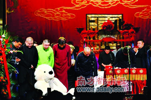 自8月9日起停演自查后,天桥德云社于前晚举办“德云社中国相声精品节目系列展演”开幕式演出,郭德纲和于谦在内的约80多位演员出席。郭德纲、于谦的表现格外受瞩目,整场演出持续将近5个小时。另对于连日来有关德云社的各种风波传言,郭德纲在台上及后台接受采访时一一作了回应。