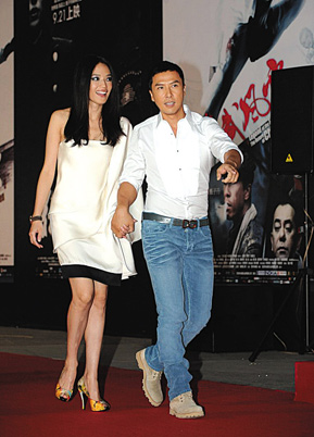 舒淇和甄子丹在《精武风云·陈真》中有一段非常纠结的恋情。被问到甄子丹算不算好男人时,舒淇回答说:“他私底下真的是好男人。我和他、他老婆一起吃饭,我喜欢看他看他老婆的眼神,很温柔。”说完,舒淇叹了口气:“唉,为什么他老婆不是我?”一句话令现场媒体大笑起来,甄子丹则赶紧安慰“失恋”的舒淇:“我也祝福你,如果你找到你的真命天子,你也会这么幸福。”特派记者 张世韬