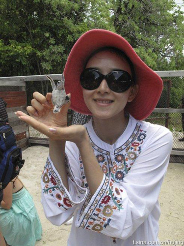 胡静豪门生活,四处旅行:在 SIPADAN 岛上的海龟保护基地,里面都是刚出生的小海龟,可爱么,在我手上跳舞呢,他有点小小害怕,别怕,我不会伤害你们的。在这里也是大马海军的驻地,对面就是菲律宾和印尼了。海龟们都有军队保护,每天上岛的人不能超过一百,这里也是潜水者看龟和鲨鱼的天堂。