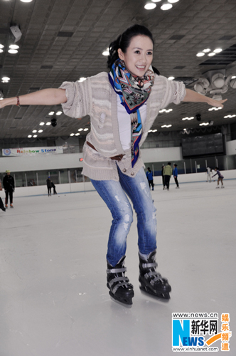 章子怡韩国宣传特奥 穿滑冰鞋意外狠摔跤(图)(2)