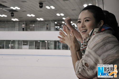 章子怡韩国宣传特奥 穿滑冰鞋意外狠摔跤(图)(6)