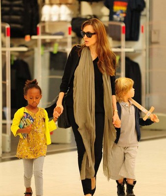 伦敦,当地时间9月18日,安吉丽娜-朱莉(Angelina Jolie)与女儿希洛(Shiloh)、养女扎哈拉(Zahara)现身伦敦机场。近日忙于宣传新片得朱莉,连在外工作也省不得离开孩子,将两个女儿带在身边照顾。正在候机的娘仨趁着离登机还有一段时间,便跑到玩具店离去打发时间,希洛一向是中性打扮不足为奇,当天更是肩扛“宝剑”,英气十足,而扎哈拉则握着一个本子,完全乖乖女的摸样。
