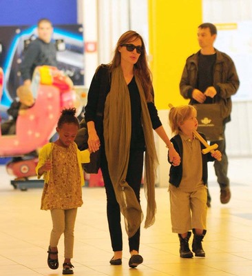 朱莉携爱女赶场捞金 希洛中性打扮肩扛"宝剑"(图)(2)