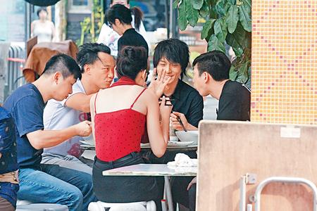 据香港“星岛日报”消息,前日下午4时许,李璨琛与女友在香港一间茶餐厅的门外享用午膳。不久,陈奕迅手持一杯咖啡前来,并与李璨琛谈个不停。全程只见陈奕迅滔滔不绝,说得兴起,更比手画脚非常开心。其后周国贤路过,刚开始也未坐下,只站着与陈奕迅等人聊天,最后还是被陈奕迅的话题吸引,安坐下来做聆听者。
