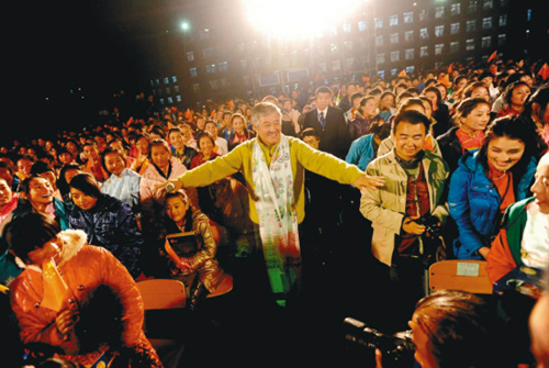 对于不常走入校园的小沈阳来说,看到这么多学生,尤其是来自青海玉树灾区的藏族学生,非常兴奋。他在现场认真地教藏族学生们唱《我叫小沈阳》,字斟句酌,还真像个老师样。一名学生表示:“《我叫小沈阳》这首歌以前曾多次听过,但从未面对面见过小沈阳,这回算是见到真的了,见到‘活’的啦!”