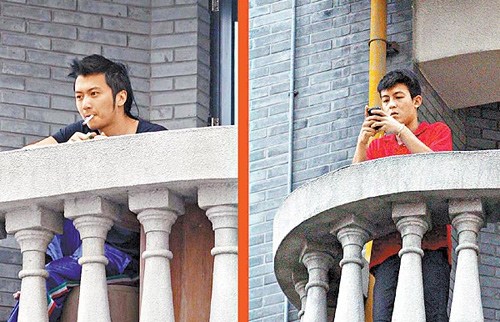 有网友看到陈冠希被拍的照片眼睛一亮,发现曾和陈冠希“情同兄弟”的谢霆锋,之前到上海也下榻同样的酒店,也爱倚靠在阳台,只不过陈冠希玩手机表情迷蒙,谢霆锋则是抽烟解闷,眼神还有些呆滞。