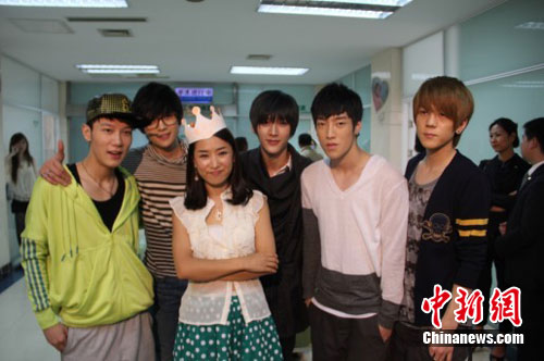 韩星SARA剧组庆生 胡兵贴心领唱 HIT-5喂蛋糕 (2)