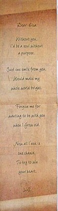 据台湾“中国时报”消息,这篇求爱广告的内文是:亲爱的Elva,没有你我就像个失去方向的灵魂,只要你的一个微笑就可让我的世界充满光彩,原谅我如此想要与你共度余生,我只请求给我一次机会,让我试著赢得你的心。 L.S.
