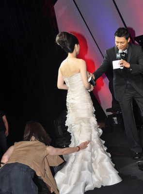 周慧敏雪肌白裙秀性感 专人提裙艳压巩新亮(图)(4)