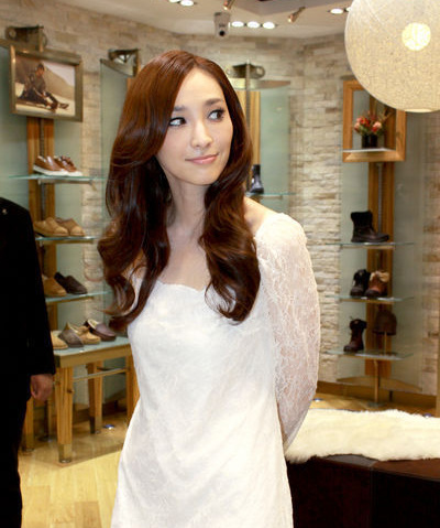吴佩慈淑女范儿蕾丝裙配白袜 上海捞金(组图)(3)