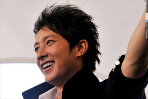 韩庚并没有让2000名海内外歌迷等太久,约下午4点10分就抵会场,他一亮相,歌迷尖叫声四起,陆续齐声大唱《爱的翅膀》,显然让台上的韩庚很感动。