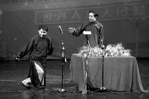 往常在德云社“倒二”演出的何云伟、李菁,终于轮到压轴演出。本报记者 王嘉宁 摄