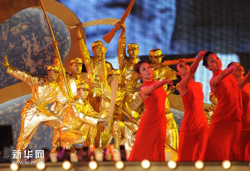 10月12日,演员在开幕式晚会上表演舞蹈。 孙参 摄
