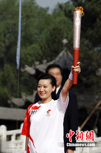 资料图:谭晶在2008年北京奥运会上传递圣火