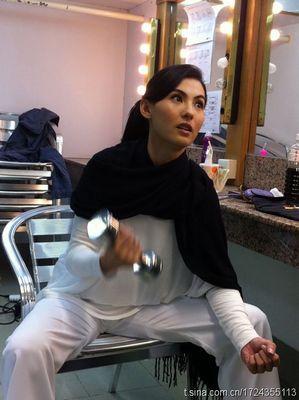 组图:张柏芝后台举哑铃练肌肉 帅气豪放