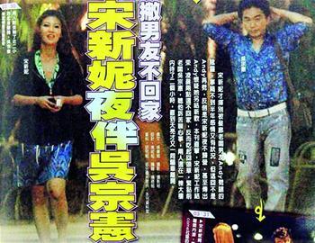 21日,台湾综艺天王吴宗宪遭台湾媒体曝光他与女艺人宋新妮在民宅中夜聚到天亮。宋新妮此前曾因在节目中与吴宗宪当众热吻而被称为“新宪嫂”,此番两人深夜密会似旧情复燃,而吴宗宪则通过经纪人回应称“两人只是朋友”。