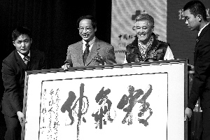 昨日,赵本山受聘成为中国红十字基金会“温暖大使”。在签约仪式上,赵本山表示,从2011年开始,个人所有的商业演出收入都将捐给中国红十字基金会。此外,他还向中国红十字基金会捐赠一幅名为“精气神”的书法作品,中国红十字基金会秘书长王汝鹏(左二)代为接受,双方商定这件作品将于11月4日在“2010马拉多纳温暖中国行”的慈善嘉年华晚会上进行拍卖,拍卖所得用于建立温暖中国行动定点医院和贫困肿瘤患者的救治。中国红基会2006年10月发起“温暖中国——贫困肿瘤患者救治行动”,旨在通过捐赠癌症治疗设备、在全国各地建立一批定点医院的方式,长期为贫困家庭的肿瘤患者提供免费救治。本报记者 吴江 底东娜 勾伊娜 摄影报道
